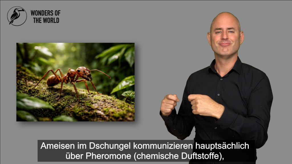 Aus Ihrem Text entsteht ein barrierefreies Gebärdensprachvideo – mit klaren Bild- und Texteinblendungen, die deine Botschaft für alle sichtbar und verständlich machen.